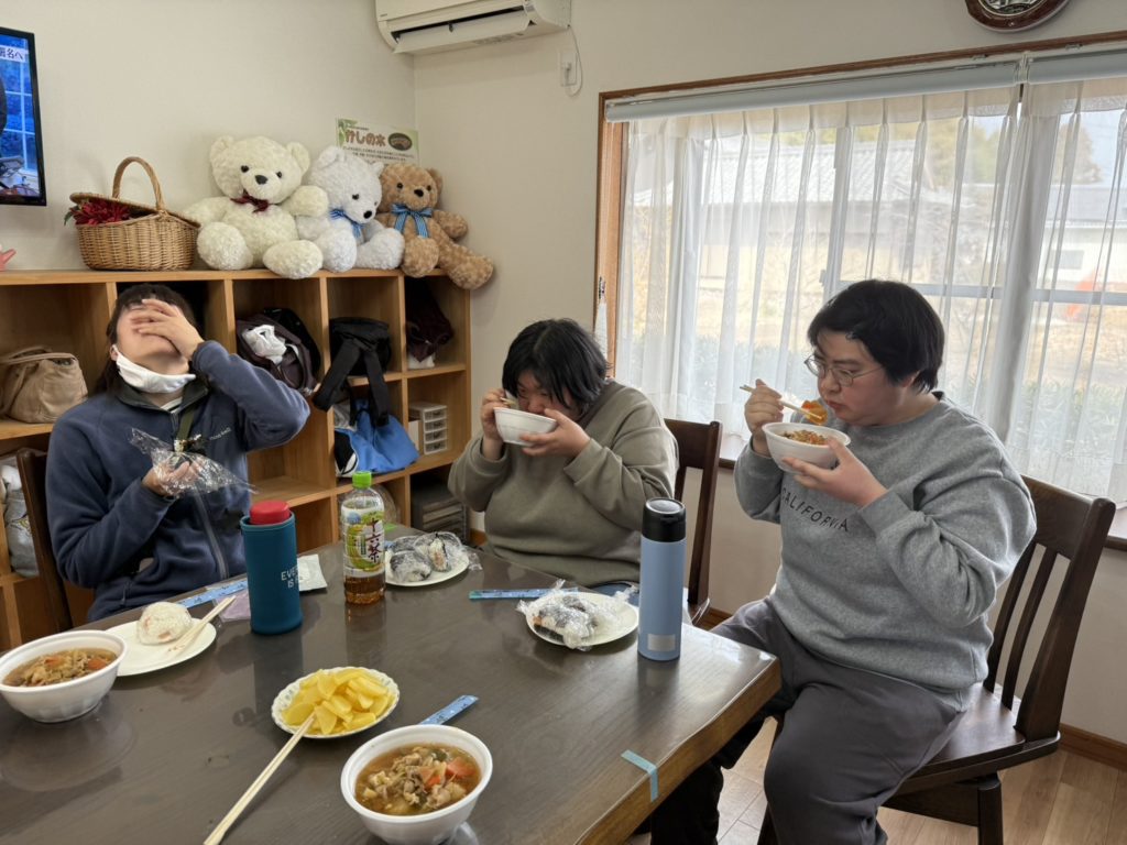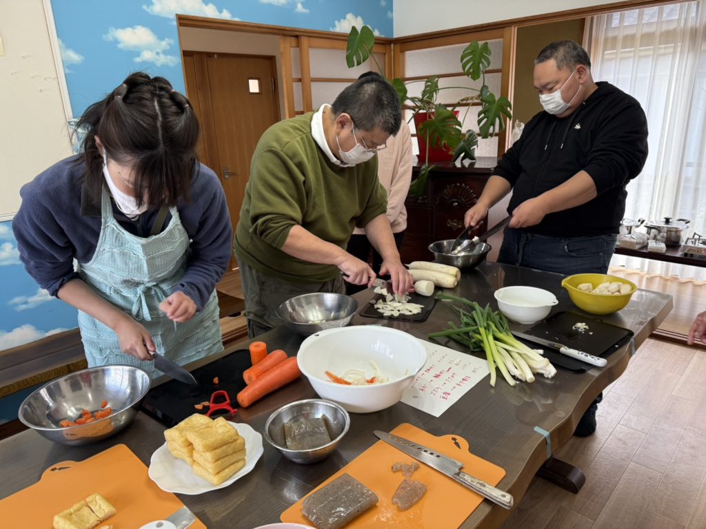 2025年11月21日 / 最終更新日時 : 2025年11月21日 管理者 お知らせ 02月:おにぎりと豚汁作りおにぎりと豚汁作り仲間と協力して作った豚汁、美味しかった!おにぎりもうまく握れた!かしの木ではメンバー(利用者)さん、職員さん募集中です。詳しくは、0574-42-9459 担当:長沼 までお問い合わせください。コメントを残す コメントをキャンセルメールアドレスが公開されることはありません。 ※ が付いている欄は必須項目ですコメント ※名前 ※ メール ※ サイト 次回のコメントで使用するためブラウザーに自分の名前、メールアドレス、サイトを保存する。上に表示された文字を入力してください。 Δ